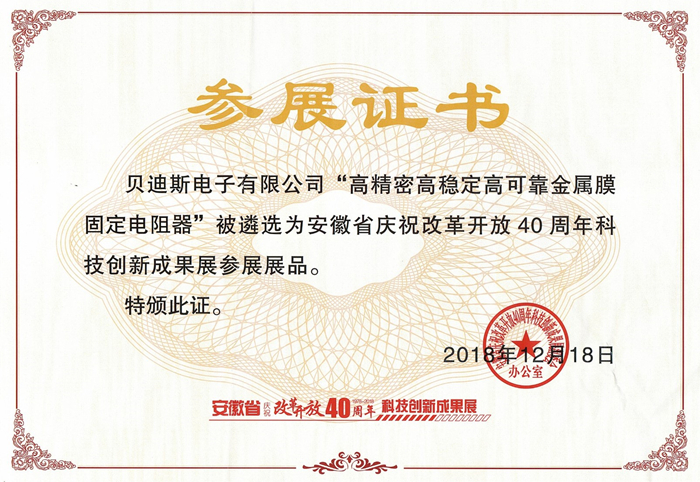 本次展覽以“創(chuàng)新驅(qū)動(dòng),科技引領(lǐng),建設(shè)現(xiàn)代化五大發(fā)展美好安徽”為主題,集中展示改革開(kāi)放40年來(lái),安徽省在關(guān)鍵核心技術(shù)領(lǐng)域取得的突破性成果。入選參展的精密電阻器系列產(chǎn)品是貝迪斯公司在引進(jìn)國(guó)外先進(jìn)技術(shù)基礎(chǔ)上精心研制的高端電子元件產(chǎn)品,在結(jié)構(gòu)形式,功能性能、技術(shù)應(yīng)用等方面具有較大創(chuàng)新,處國(guó)內(nèi)領(lǐng)先水平。產(chǎn)品具有高可靠、高穩(wěn)定、高精密、低溫飄的特點(diǎn),技術(shù)指標(biāo)滿(mǎn)足國(guó)家軍標(biāo)要求,達(dá)國(guó)內(nèi)領(lǐng)先水平,可廣泛應(yīng)用于航天航空等領(lǐng)域高端裝備配套。產(chǎn)品多次為我國(guó)神舟載人航天工程、嫦娥探月工程及天宮一號(hào)發(fā)射成功配套,為我國(guó)的航天航空事業(yè)做出了貢獻(xiàn)。